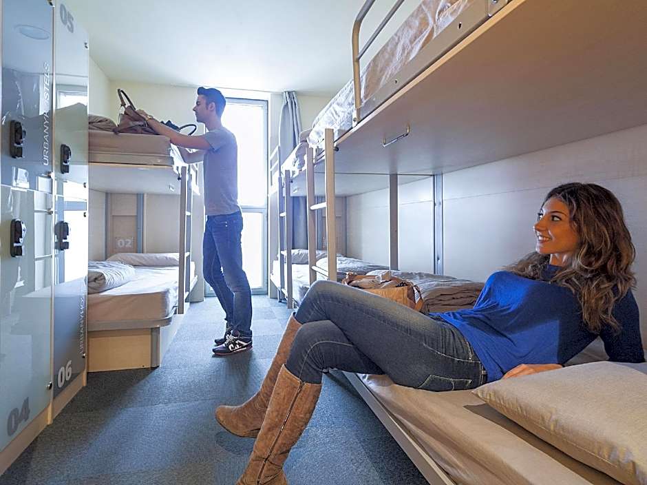 This bed in a 6-bed dormitory features individual lockers, power outlets and reading lamps by each bed. It has air conditioning and heating. Bed linen is provided Towels available for rent 2 plugs by each bed